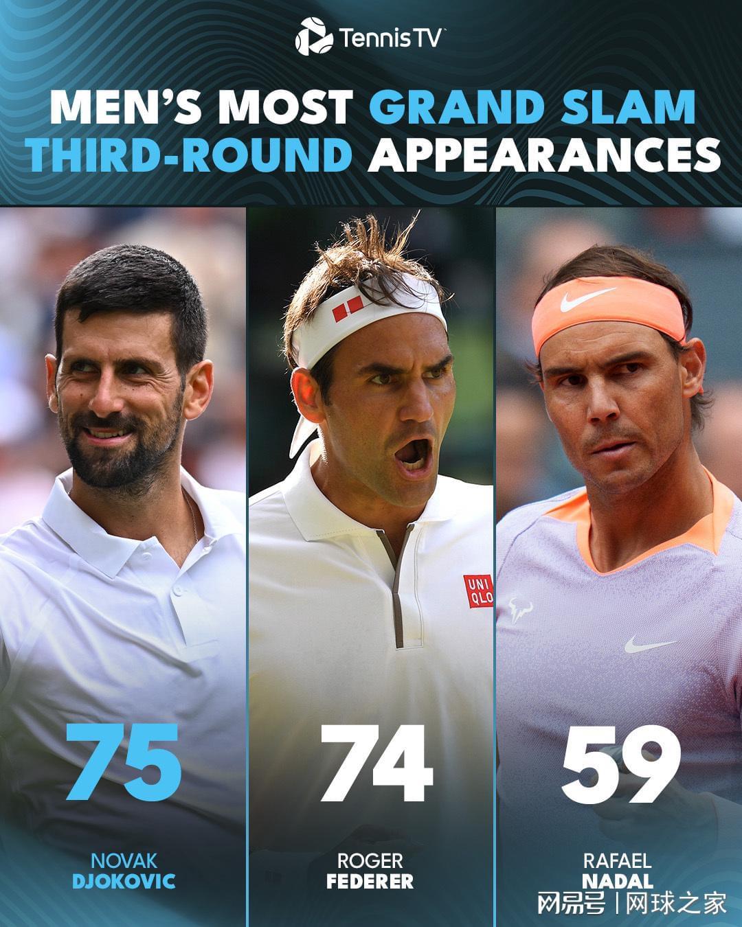 第75次晋级大满贯第三轮,成为史上晋级大满贯男单第三轮次数最多的球员;
